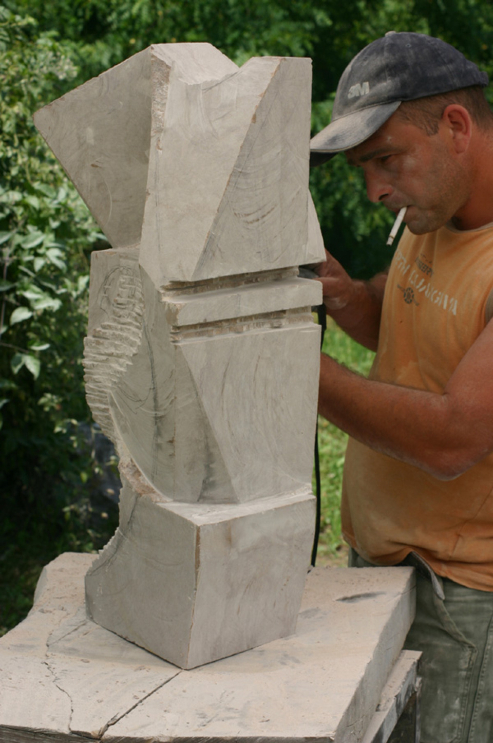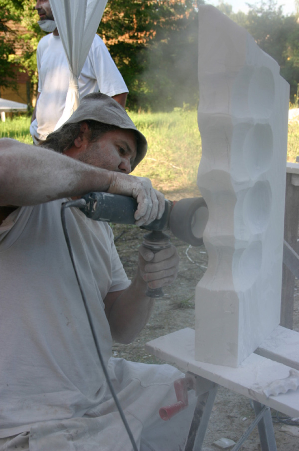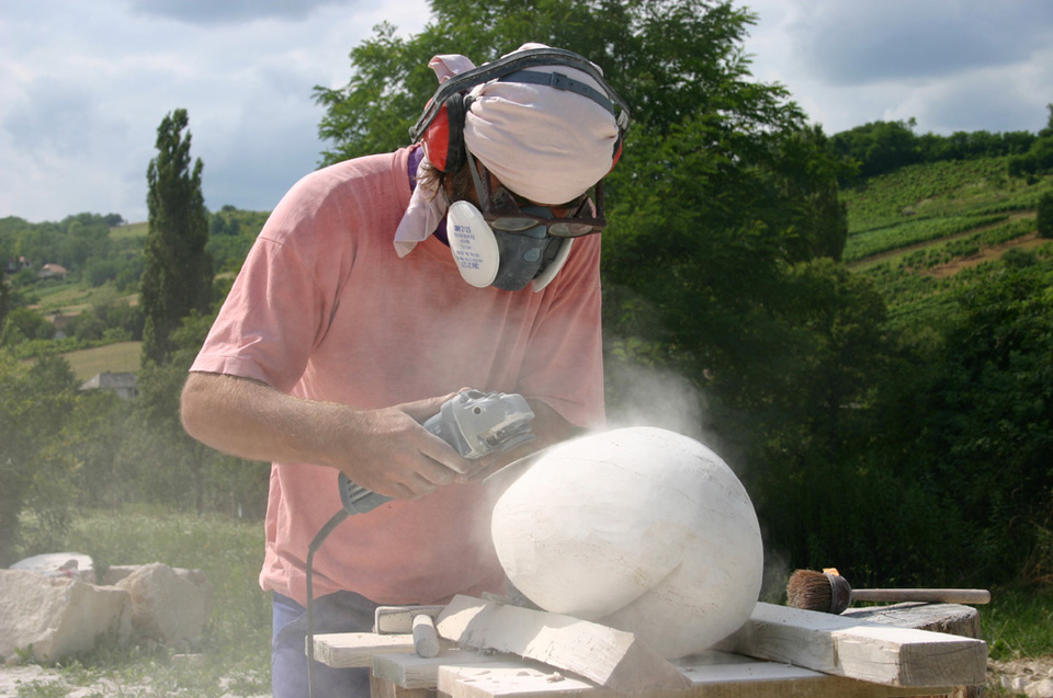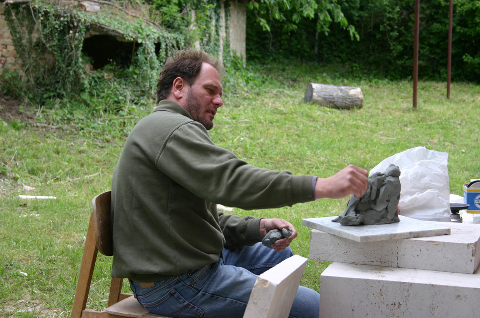 Kővel, fával, tűzzel, olajjal, aquarellel, vésővel, kalapáccsal, flexszel, egyenesköszörűvel, kompresszorral, ecsettel … küzdelem a formákkal és a fénnyel.