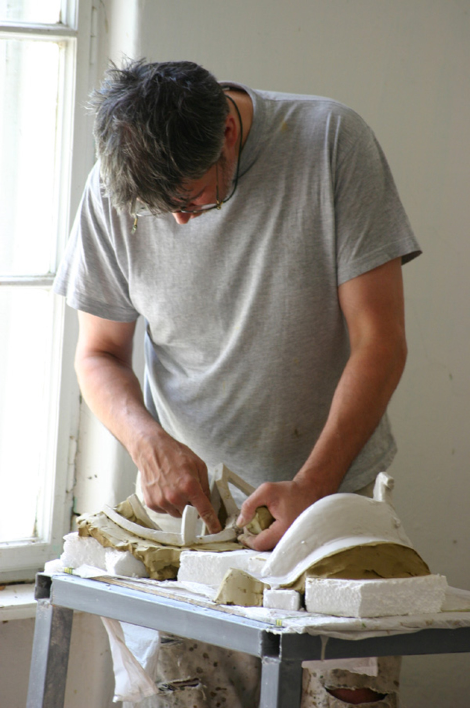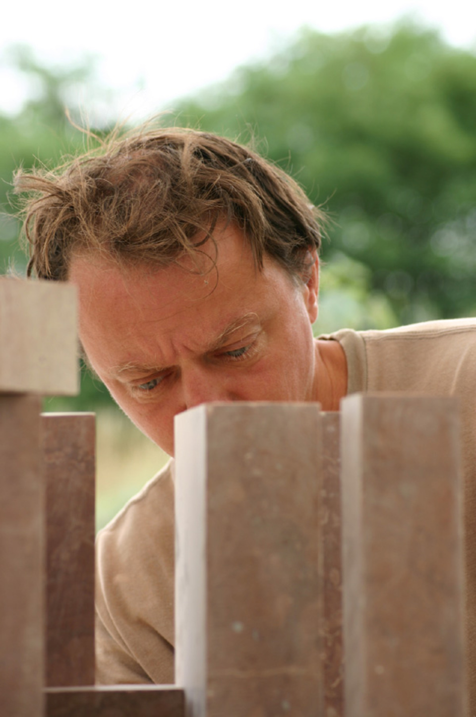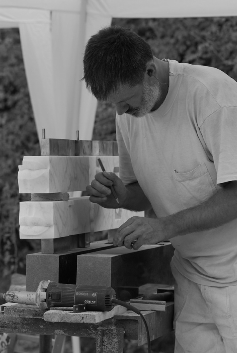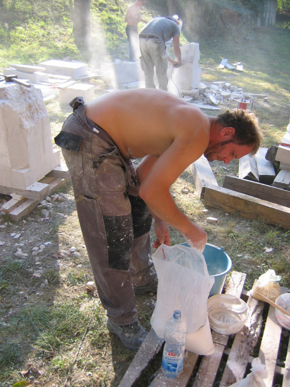 Kővel, fával, tűzzel, olajjal, aquarellel, vésővel, kalapáccsal, flexszel, egyenesköszörűvel, kompresszorral, ecsettel … küzdelem a formákkal és a fénnyel.