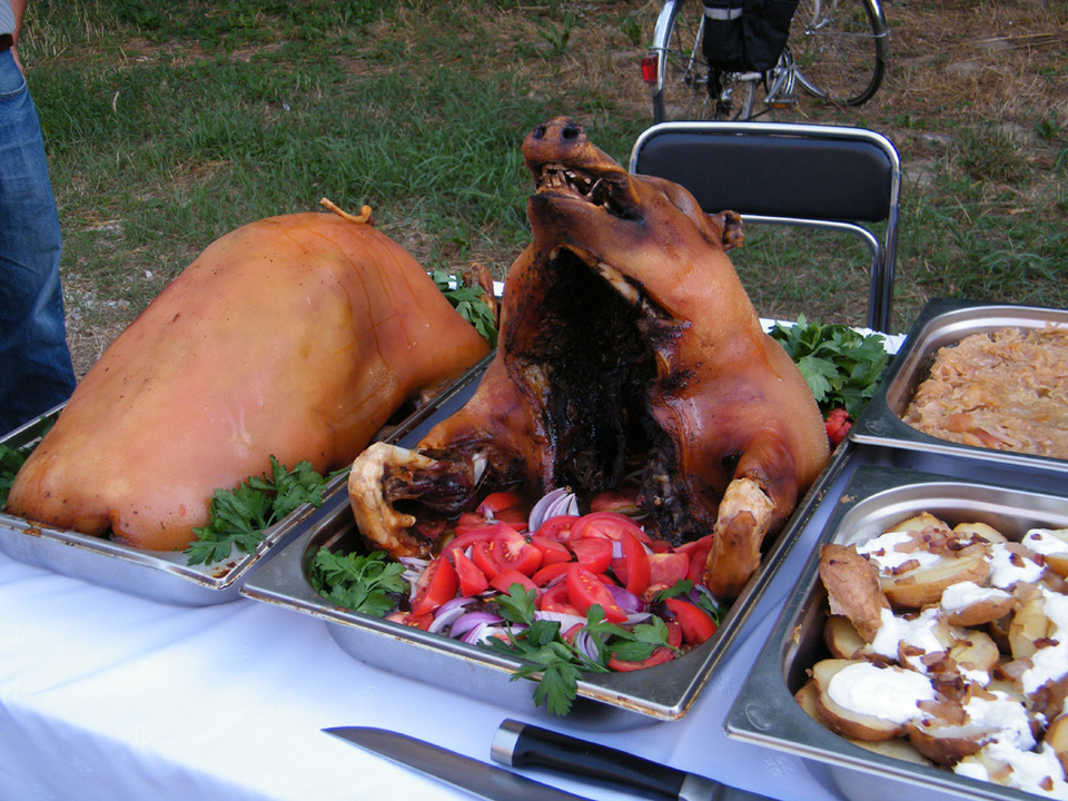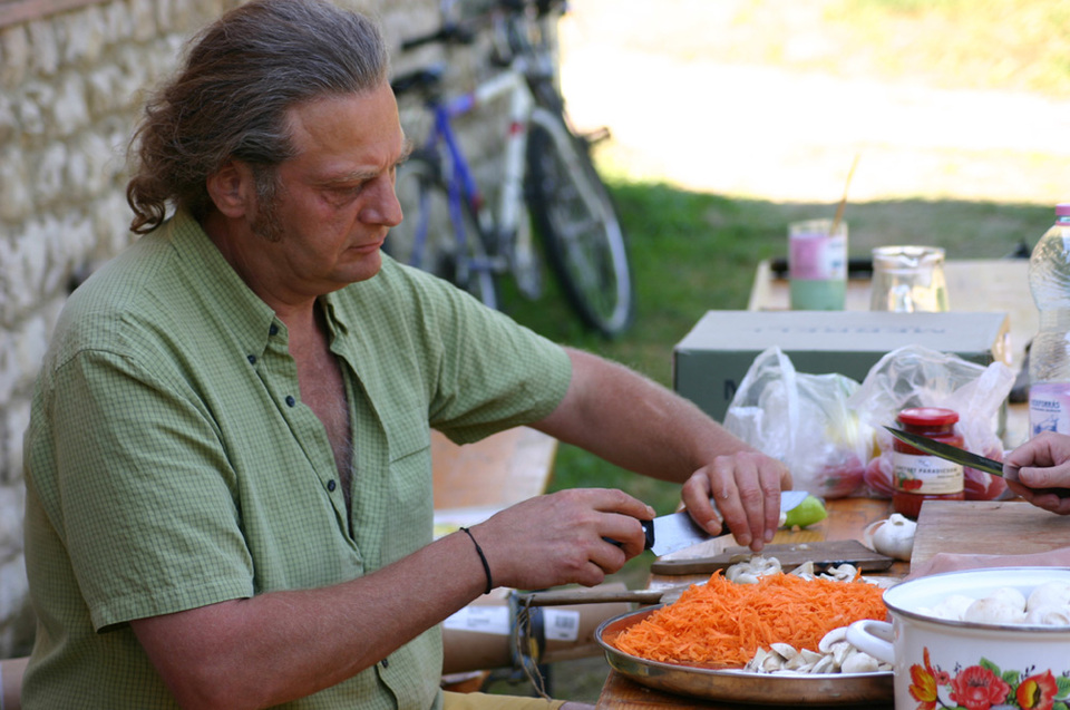 Van itt minden: evés és nagy zabálás, ezer arcú konyhák, ivás és iszás, játék és vicc, humor, irónia, barátok, mecénások………….és a kihagyhatatlan foci a „polginál”.